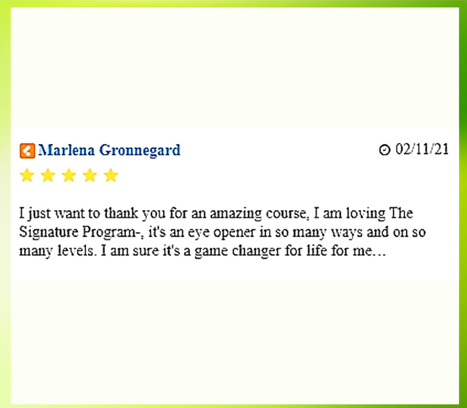 Thank you Johanna for a lovely talk the other day during the check-in call. I feel like I’m turning the page this week and your support program has been vital for me. I’m so grateful, I joined.