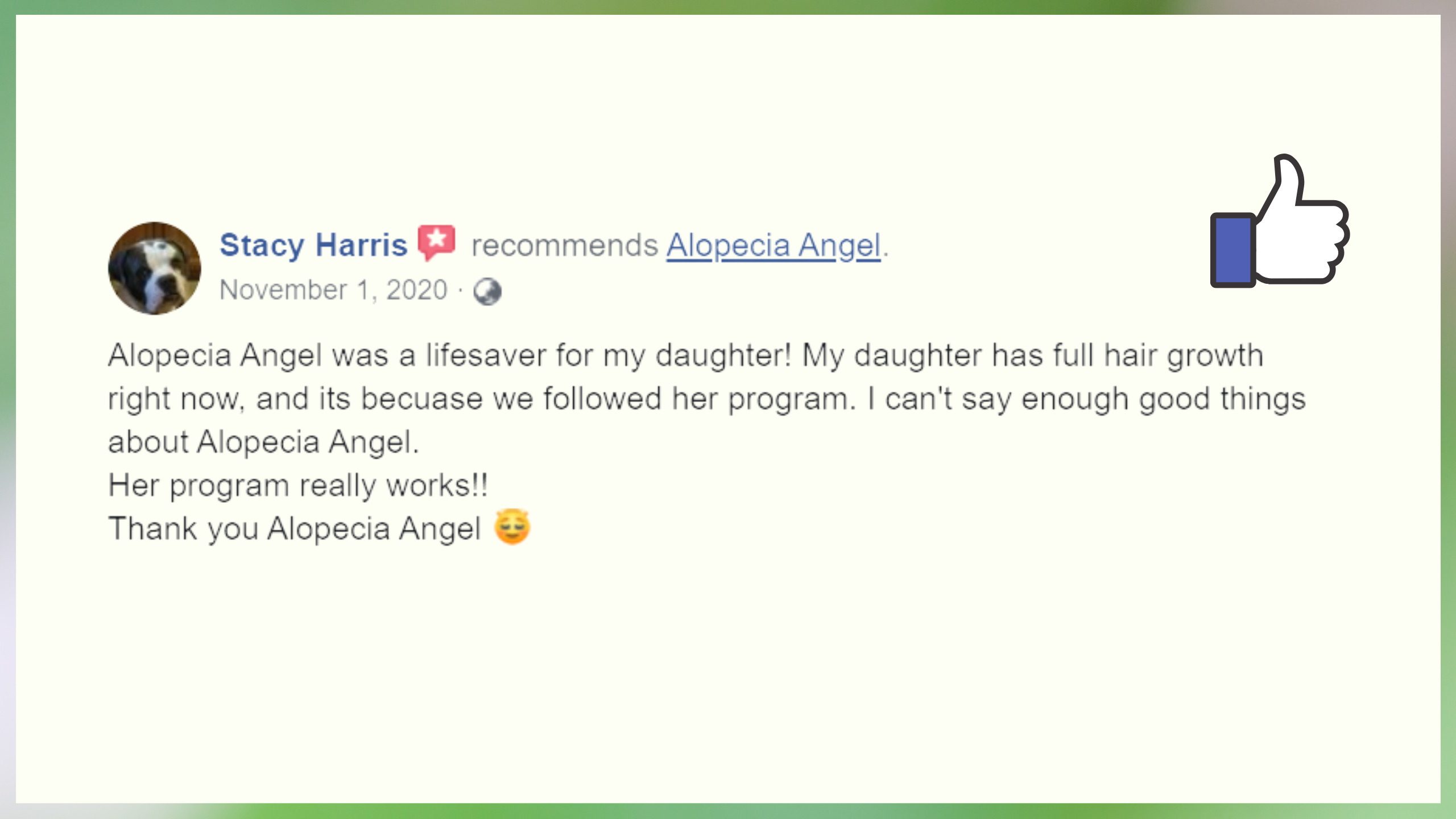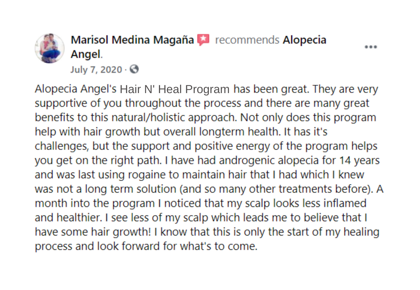 Our community is growing every day, and many clients share their journeys on Facebook. These reviews reflect authentic feedback, gratitude, and the real transformations experienced with Alopecia Angel’s natural approach to healing alopecia.